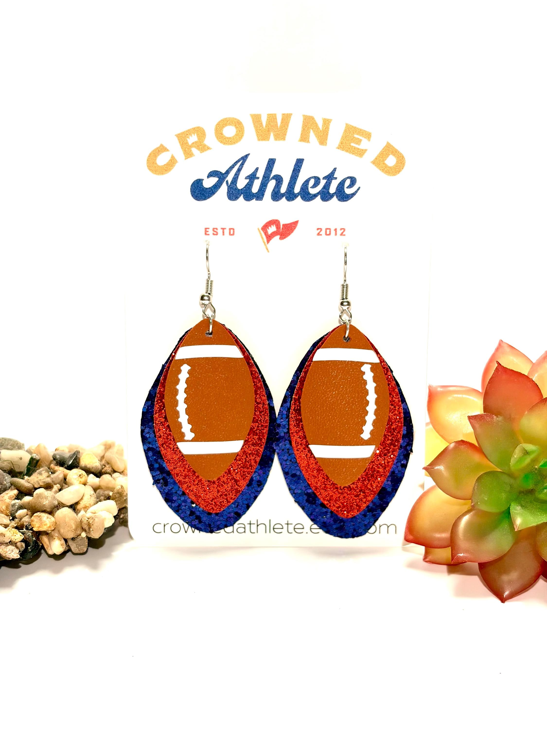Handmade Houston Texans Football Dangle Earrings | Game Day Jewelry | Red Blue White NFL Fan Gift | Team Spirit Accessories for Women