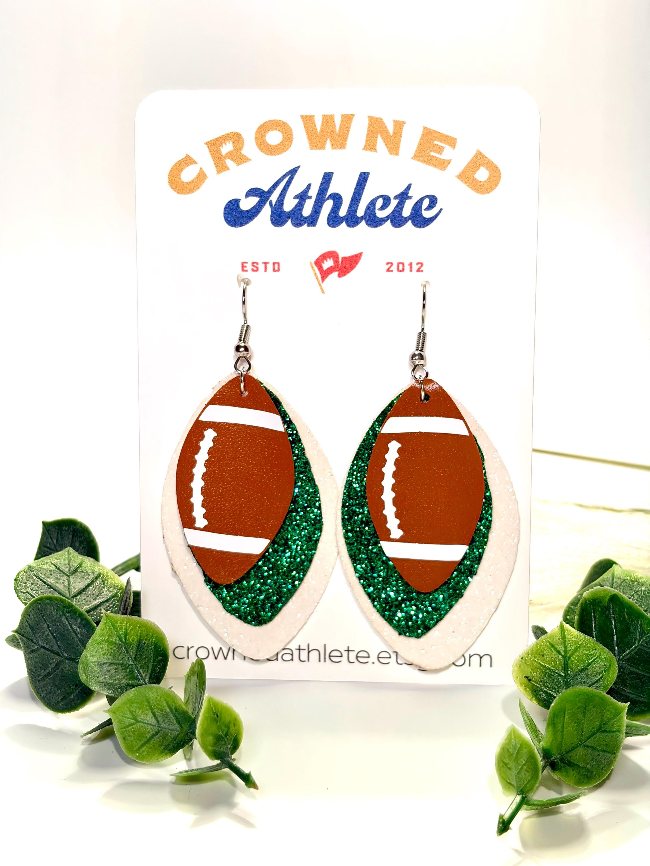 Show off your team pride with these handmade New York Jets football dangle earrings! Perfect for game day, tailgates, or everyday wear, these lightweight earrings combine green and white team colors with a fun football theme.
