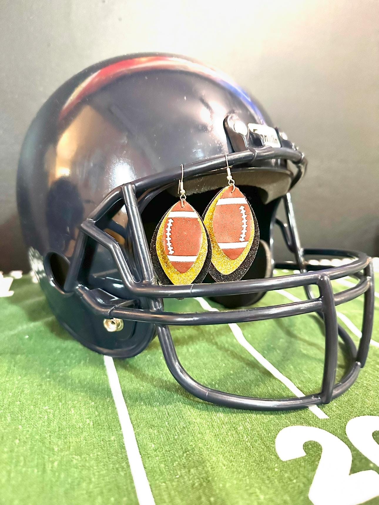 Score big with these handmade custom football dangle earrings! Perfect for showing off your team spirit at games, tailgates, or as a gift for football lovers. Each pair is carefully crafted and customizable with your favorite team colors and Jersey number. Lightweight, durable, and eye-catching, these earrings are a fun way to celebrate football season.